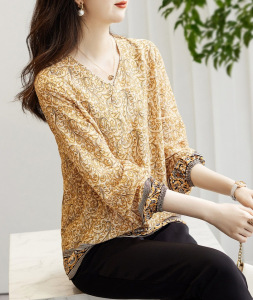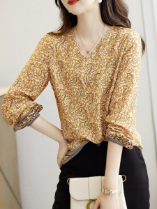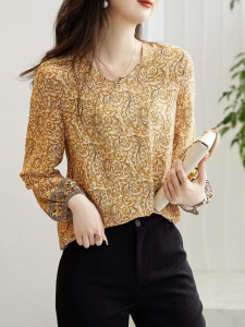 异域风格印花雪纺衬衫2025秋季新款时尚气质v领长袖衬衣女装上衣