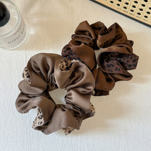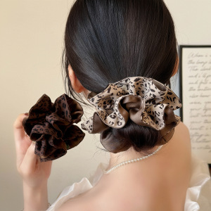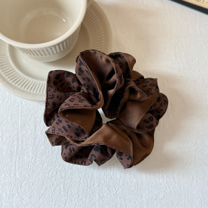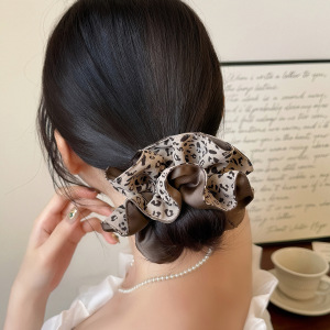 早秋咖色豹纹褶皱荷叶边发圈高弹力马尾发绳大肠圈气质百搭头绳女