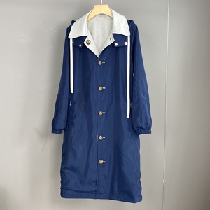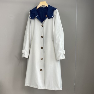 深圳南油25秋冬款英伦风撞色两面可穿连帽单排扣宽松长款风衣外套