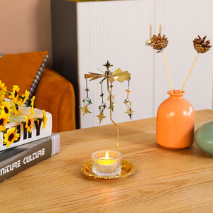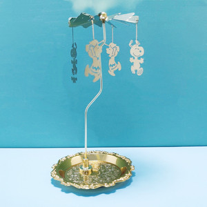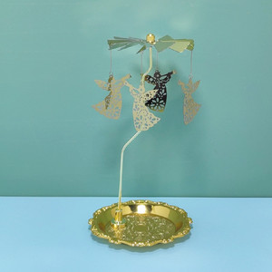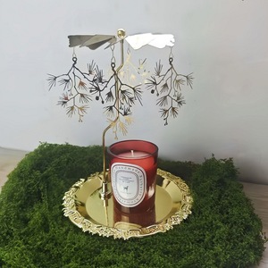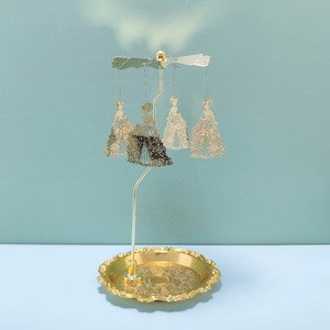 源头厂家现货香薰金色不锈钢花纹托盘旋转烛台走马灯
