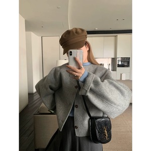 【鎏金气质】圆领短款双面呢大衣2025秋冬韩版简约廓形羊毛外套