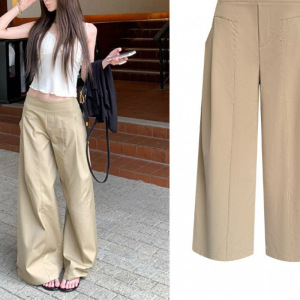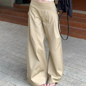 新款设计感慵懒风直筒卡其宽松阔腿裤卡其色裤子其它丝光