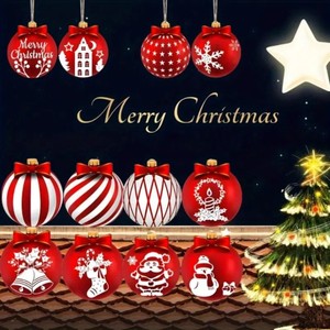 跨境创意圣诞球木质挂件套装圣诞树装饰家居派对布置用品装饰品