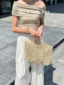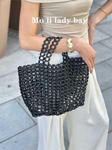 新款小众设计木珠镂空手提包2025新款春夏手工编织度假沙滩包女