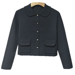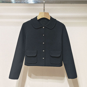 1件起批2025秋新女装 XRJ4W24D娃娃领单排扣针织开衫外套S250628