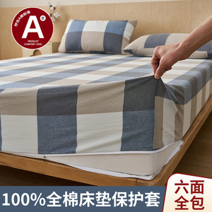 全棉六面全包拉链床笠罩纯棉席梦思学生床垫保护罩套2025新款床罩