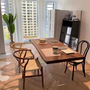 北美黑胡桃木大板桌南美实木原木茶桌老板办公桌雨木茶台餐桌书桌