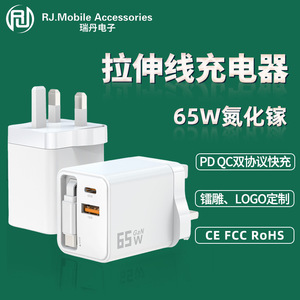 跨境PD65W伸缩线快充充电器氮化镓全协议快充A+C双口多功能充电器