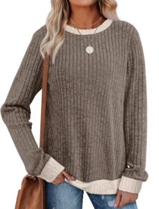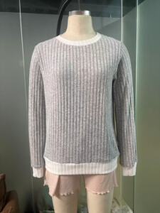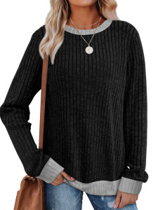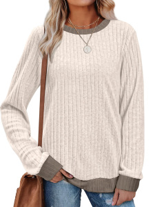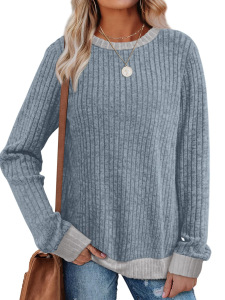 亚马逊2025新款欧美跨境女式长袖坑条磨毛休闲上衣圆领套头外衣