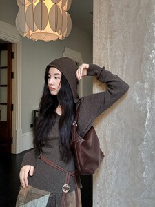 DIGM | 2025秋季废土风极简松弛感连帽修身针织衫毛衣女A3M017