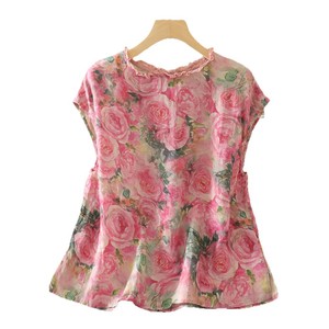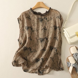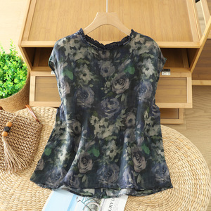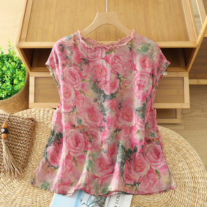 实拍2025夏文艺复古小清新碎花圆领套头宽松显瘦百搭天丝棉上衣女