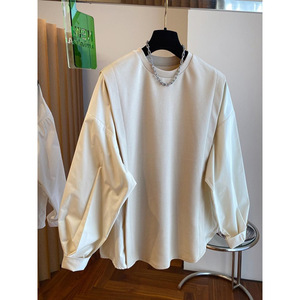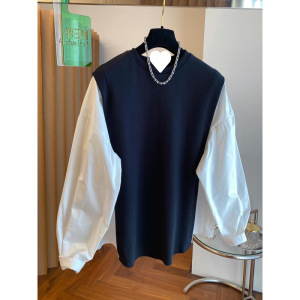 2025春秋新款叠穿设计感宽松别致衬衫袖子拼接卫衣女假两件上衣