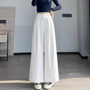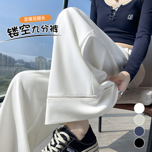 洗水棉镂空阔腿裤女2025秋季新款小个子高腰显瘦垂感九分西装裤子