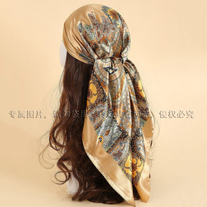 腰果印花丝巾女士欧美潮流百搭披肩跨境色丁头巾90cm方巾围巾批发