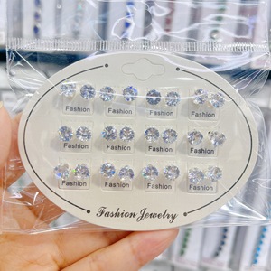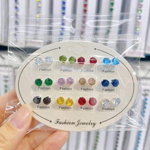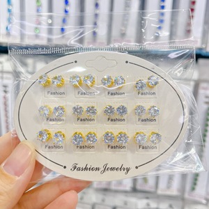 跨境耳钉铜镀金银彩色锆石钻耳环混款套装耳钉饰品12对组合耳饰