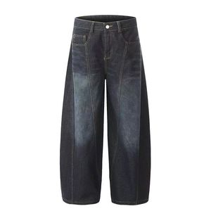 大码美式复古弯刀牛仔裤女2025秋街头风baggy廓形阔腿拖地长裤子