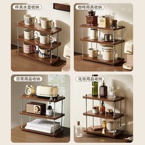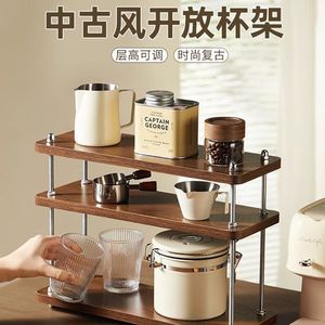 置物架中古风架子厨房架子办公桌隔层架工位桌面收纳小书架茶杯架