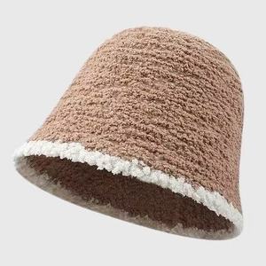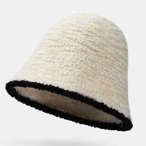 复古黑色渔夫帽菱形格子毛线帽子女秋冬季显脸小百搭大头围针织帽