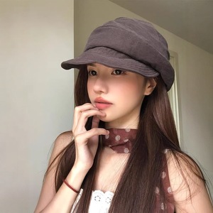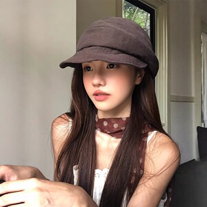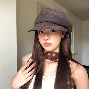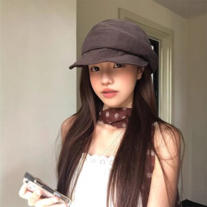 日系山本风气质报童帽子女复古小众显脸小大头围褶皱堆堆帽画家帽