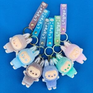 LED发光labubu拉布布钥匙扣卡通玩偶牙仔公仔书包挂件跨境植绒