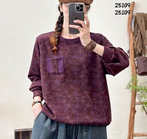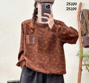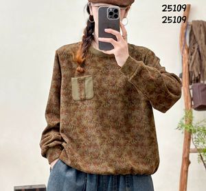 秋季 韩版宽松文艺复古贴布口袋圆领印花卫衣百搭休闲上衣女25109