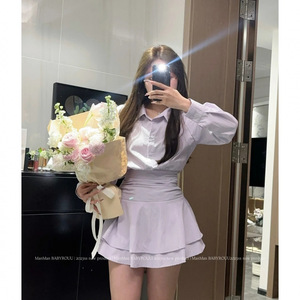 大码设计长袖连衣裙衬衫衬衣新款气质白色收腰显瘦法式连衣裙裙子