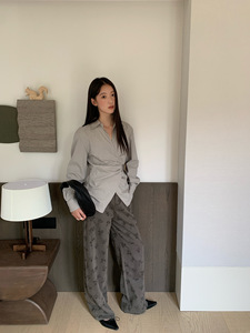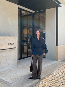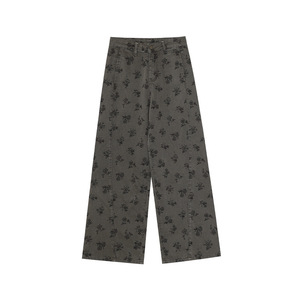 诠释美 NEWOPEN 25秋休闲显瘦棉混纺深色印花直筒牛仔长裤女F6305