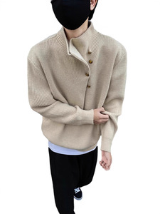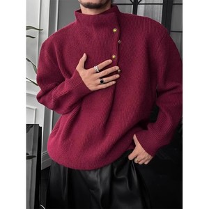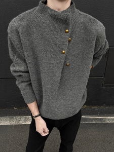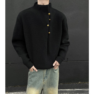不规则纽扣设计感高领毛衣男韩系潮牌痞帅慵懒oversize针织衫上衣