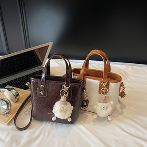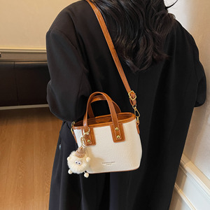 小众复古撞色小包包女2025新款秋季百搭斜挎包休闲精致手提水桶包
