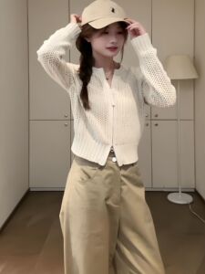 米色针织开衫外套女装秋季2025新款慵懒风宽松吊带外搭罩衫上衣夏