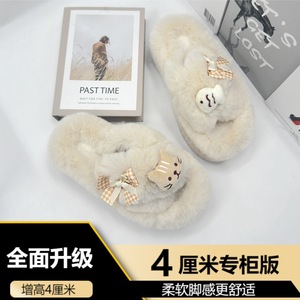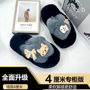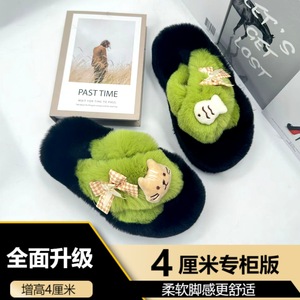 网红厚底一字毛毛拖鞋女2025秋冬新款小众设计感超火居家毛绒棉拖
