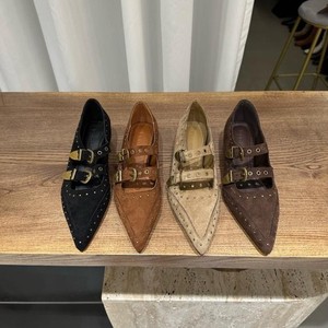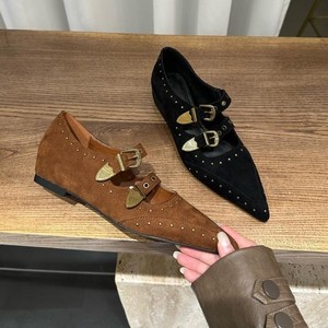 复古风2025秋季时尚百搭铆钉尖头皮带扣内增高玛丽珍浅口单鞋子女
