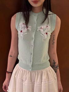 【现货三色】春夏新款丝带绣无袖针织开衫刺绣