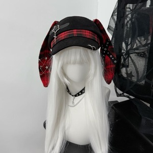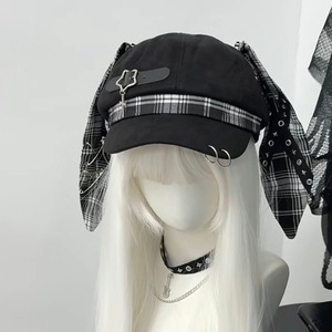 兔耳复古辣妹贝雷帽格子朋克帽子画家帽女显脸小亚文化原创帽