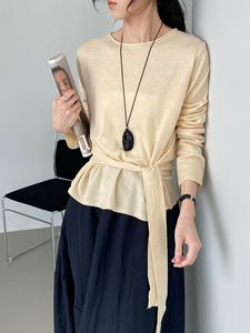 那末韩系早秋温柔绑带收腰针织衫女圆领通勤简约显瘦打底衫Y1225