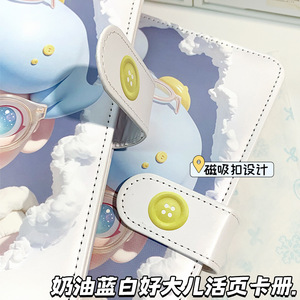 奶油蓝白dimoo磁扣卡册a5手账本笔记本小卡收纳册泡泡玛特活页本