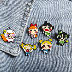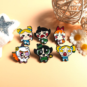 卡通动画飞天小女警胸针可爱花花毛毛泡泡个性徽章二次元动漫别针