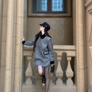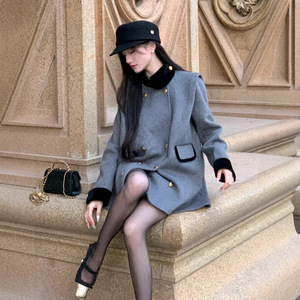 YIYIWANG 琴酒诗人 立领双排扣骑士羊毛呢撞色手工双面呢子大衣