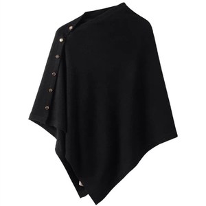 斜扣斗篷女100羊毛针织衫外套秋冬保暖大披肩围巾两用羊绒披风