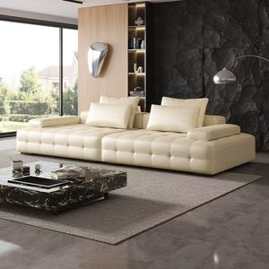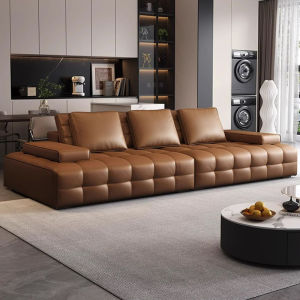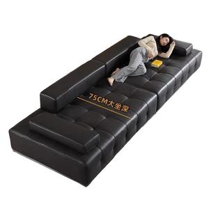 新款劳伦斯沙发意式极简直排沙发床别墅客厅大小户型皮艺沙发