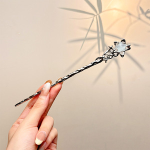 天然黑檀木发簪女清冷感发饰玉兰花步摇簪子古风旗袍头饰日常盘发
