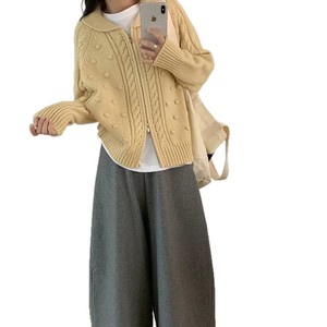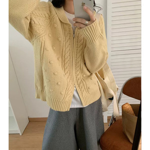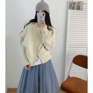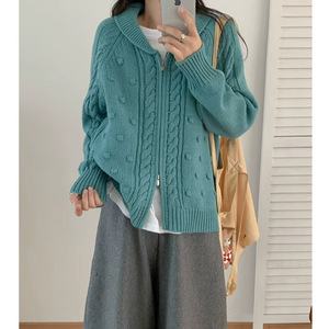 韩国娃娃领学院风麻花针织开衫秋冬新款减龄文艺高级感毛衣外套女