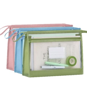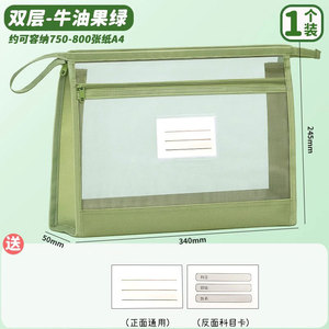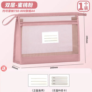网纱科目分类袋书袋透明文件袋带标贴款档案试卷补习袋拉链收纳袋