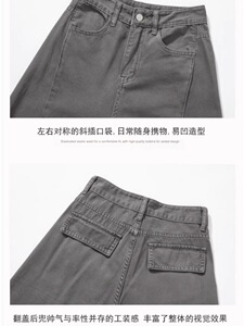 灰色复古工装裤女2025秋季新款高腰宽松显瘦慵懒风直筒美式阔腿裤