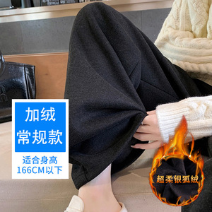 300斤大码胖mm羊绒糯米裤女秋冬加绒高腰遮垮显瘦直筒黑色阔腿裤