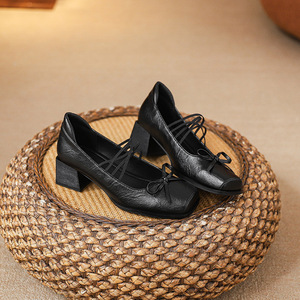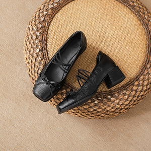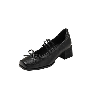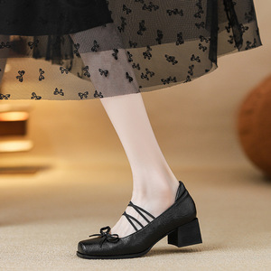 法式绝美复古蝴蝶结玛丽珍浅口单鞋女2025新款粗跟不累脚高跟鞋子