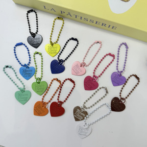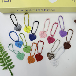 彩色英文金属爱心珠链挂件ins风小清新可爱桃心链条钥匙扣挂饰