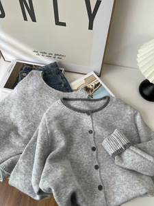 韩系2025秋季新款针织开衫+短袖马甲背心毛衣时尚搭配两件套6071