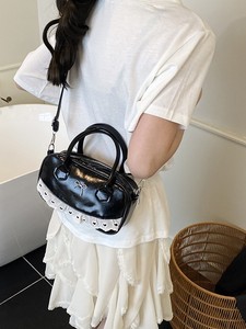 2025夏季新款大容量韩版简约纯色洋气单肩斜挎手提保龄球包包女