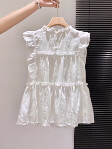 法式白色小飞袖衬衫女夏2025新款设计感甜美木耳边无袖娃娃衫上衣